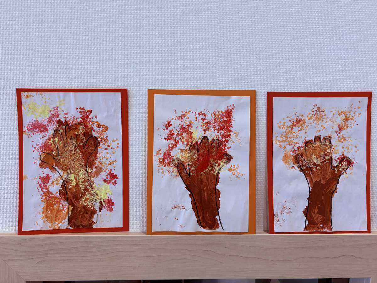 Zum Abschluss der herbstlichen Wochen entsteht noch ein großer Herbstbaum im Gruppenraum, den die Kinder gemeinsam gestalten. So wächst mit jedem Blatt, jedem Zapfen und jeder Idee ein Stück gemeinsamer Entdeckerfreude – ganz im Sinne unseres Mottos: „Spielen ist die höchste Form der Forschung.“