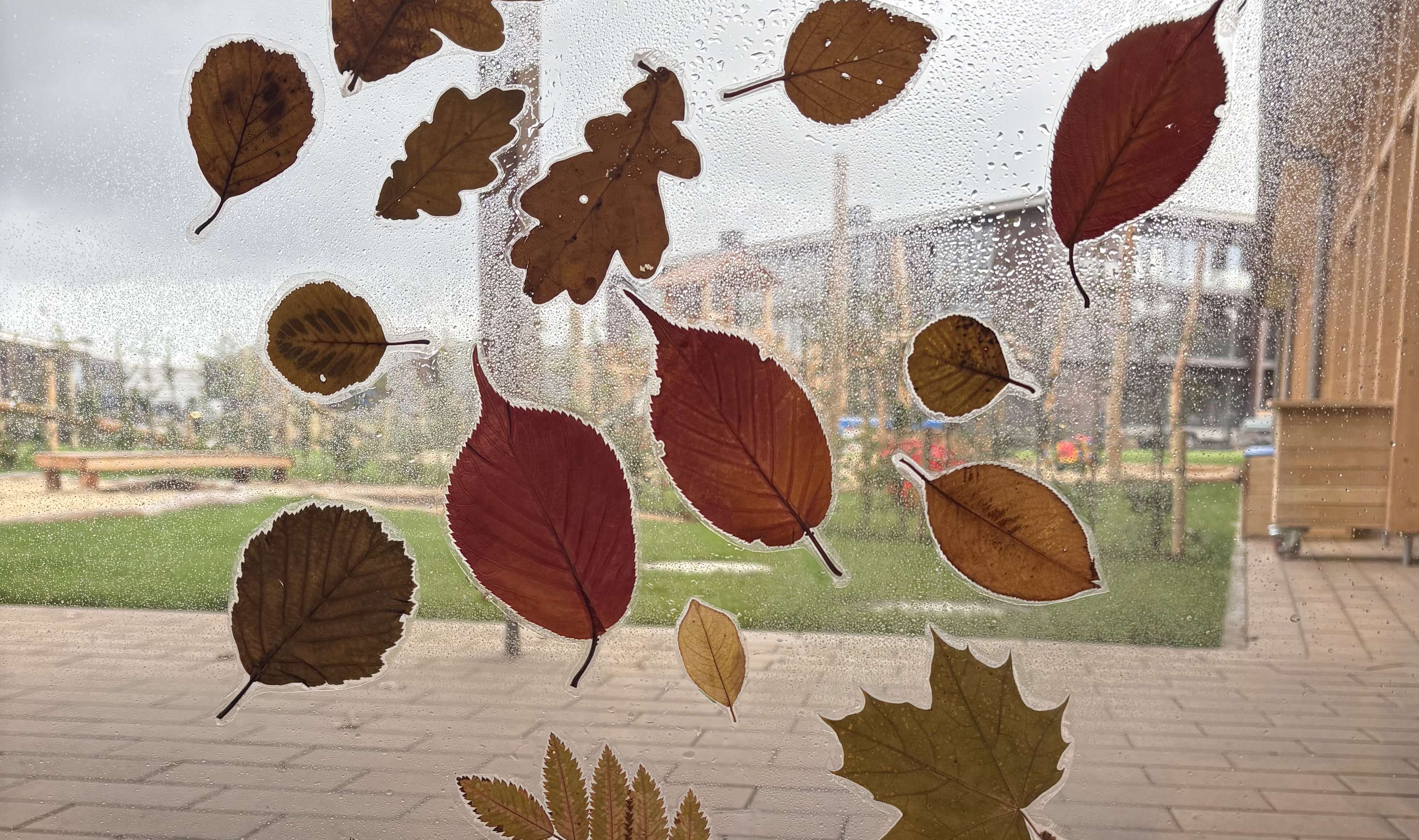 Bei einem Spaziergang durch die Umgebung sammelten die Kinder farbenfrohe Blätter, die anschließend einlaminiert und an den Fenstern angebracht wurden – so wandert der Herbst direkt ins Gruppenzimmer. Auch handwerklich waren die kleinen Forscherinnen und Forscher aktiv: Unter Hilfe der Erzieherinnen bohrten sie mit einem Akkuschrauber Löcher in Kastanien und gestalteten daraus eine farbenfrohe Herbstgirlande.